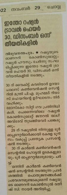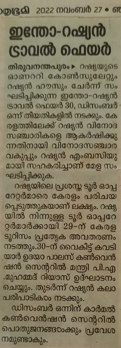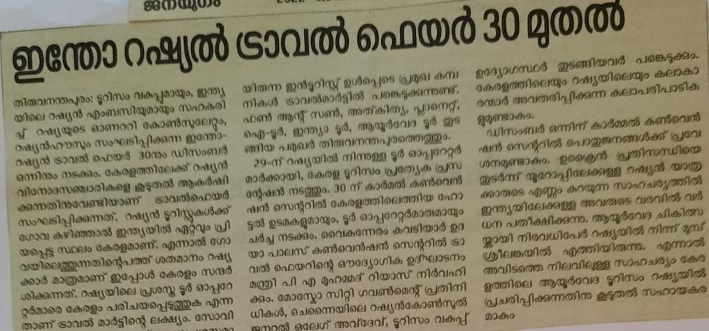 ВАЖНОСТЬ ОРГАНИЗАЦИИ ИНДИЙСКО-РОССИЙСКОГО ТУРИСТИЧЕСКОГО ФОРУМА В КЕРАЛЕ